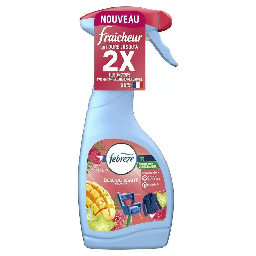 Відкрийте для себе аромат Fruits Exotiques, натхненний унікальним поєднанням екзотичних фруктів, який перенесе вас на пляж, обсаджений пальмами. Febreze Cotton Fresh Fabric Refresher з технологією OdourClear усуває стійкі запахи, що потрапили в тканини, і залишає свіжий аромат. Febreze Fabric Refresher — це ковток свіжого повітря для тканин, які важко прати, таких як ковдри, штори та килими. Дезодоранти для тканини Febreze пройшли дерматологічне тестування та безпечні для використання з домашніми тваринами.