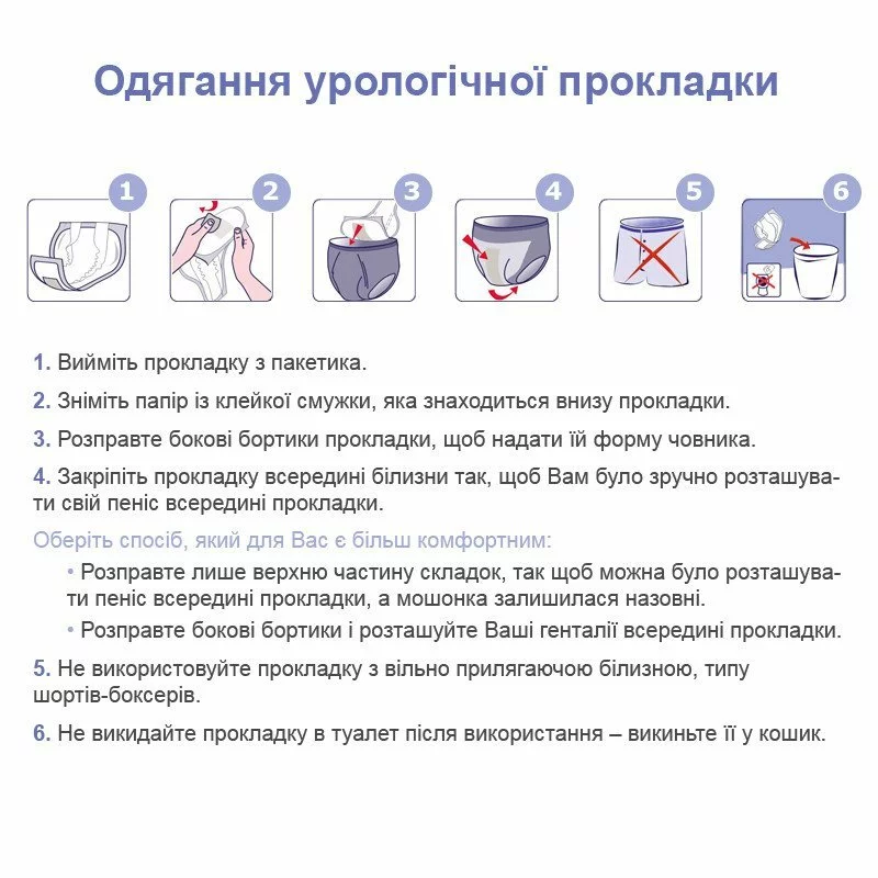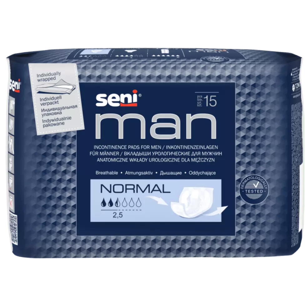 Урологічні прокладки SENI MAN NORMAL 15шт в упаковці, розроблені для чоловіків, які ведуть активний спосіб життя та цінують комфорт і безпеку разом із непомітністю.