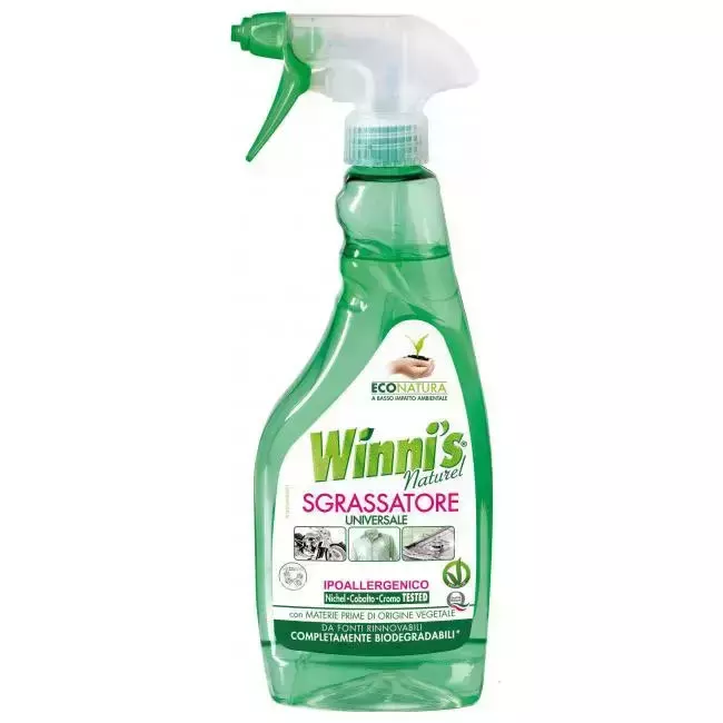 Знежирювач універсальний Winni's засіб для чищення, який видаляє жир та сильні забруднення з твердих поверхонь, залишаючи їх абсолютно чистими та блискучими. Запах кедра та бергамоту додає приємного запаху очищеним поверхням. Може бути використаний на плитах, витяжках, мийках, жалюзі, плитці, барбекю, колісних дисках, камінах, світильниках, столах.